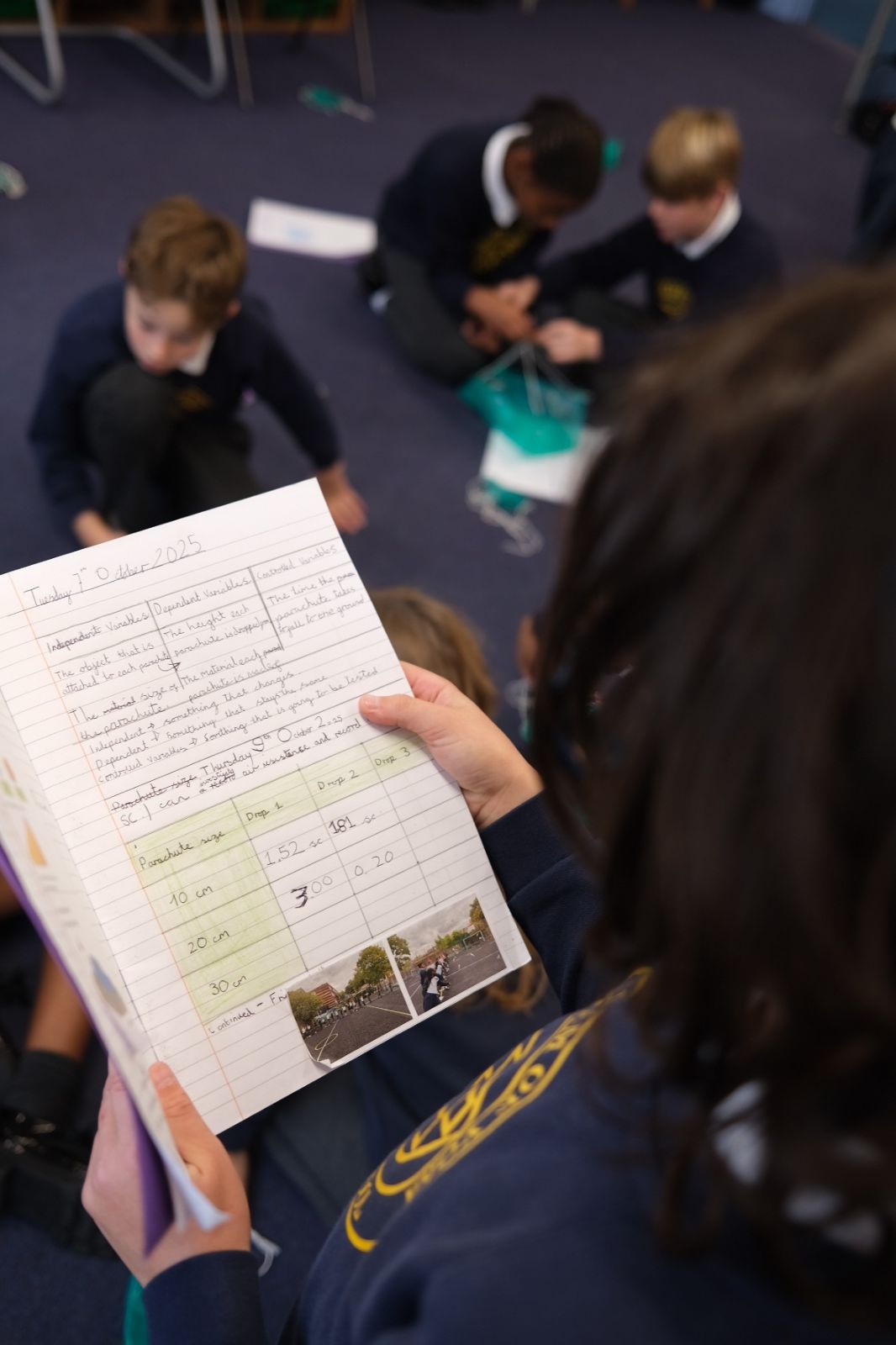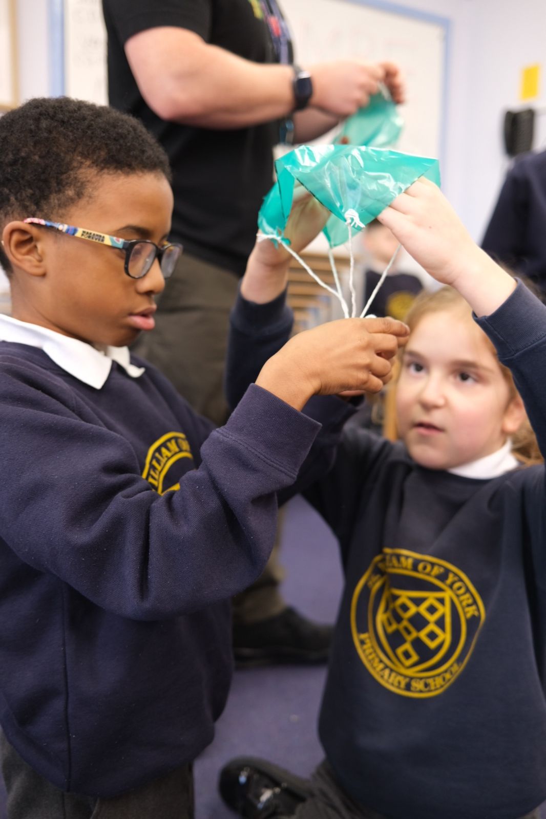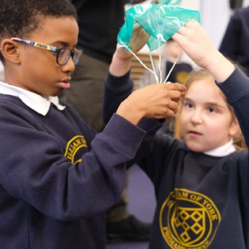 Year 5 explored forces and air resistance by designing and testing their own parachutes. Working in groups, they created parachutes and dropped them safely from the school windows to see how air resistance affected the speed of the fall. The experiment helped them understand how shape, size, and materials can change the way forces act on an object.